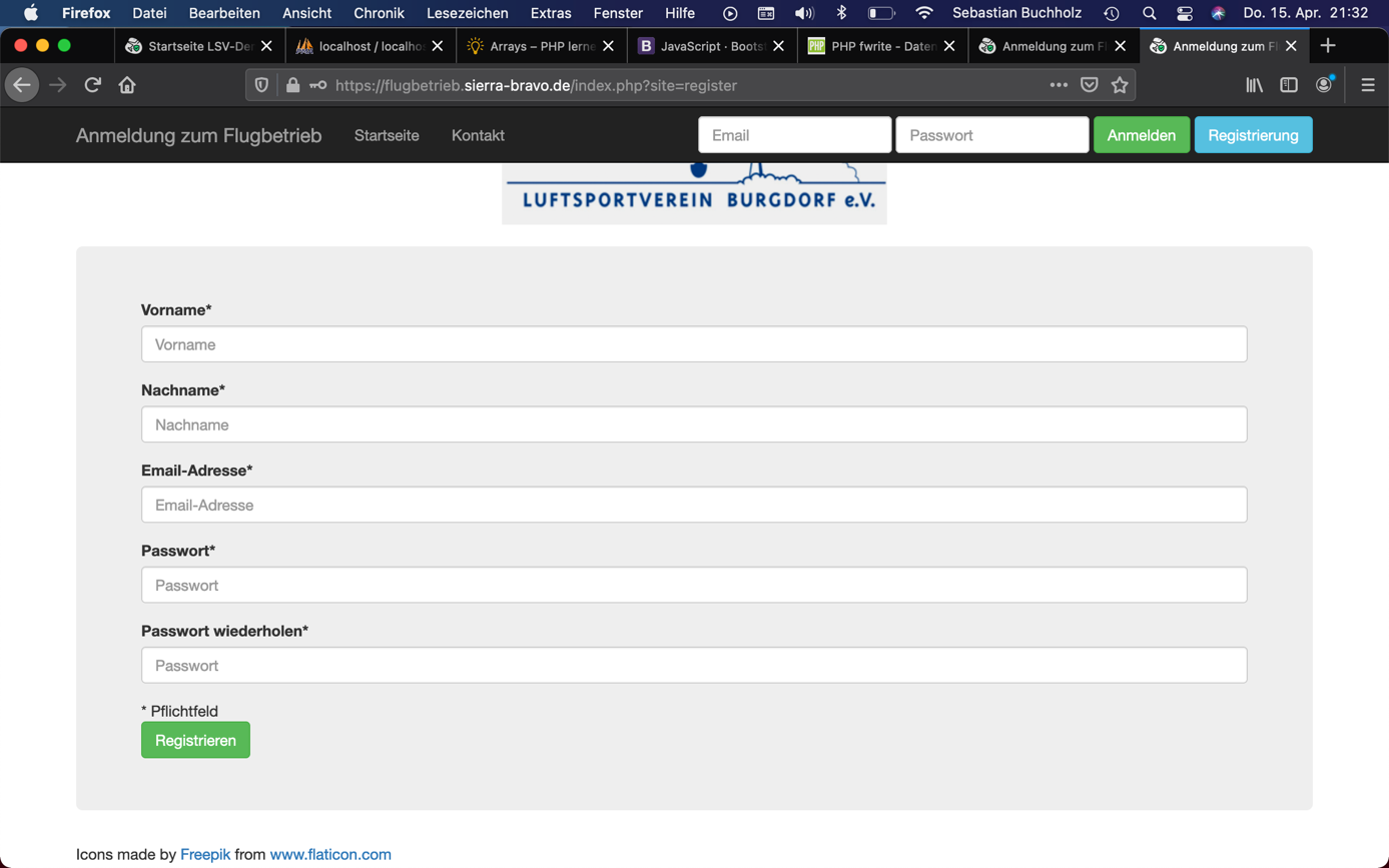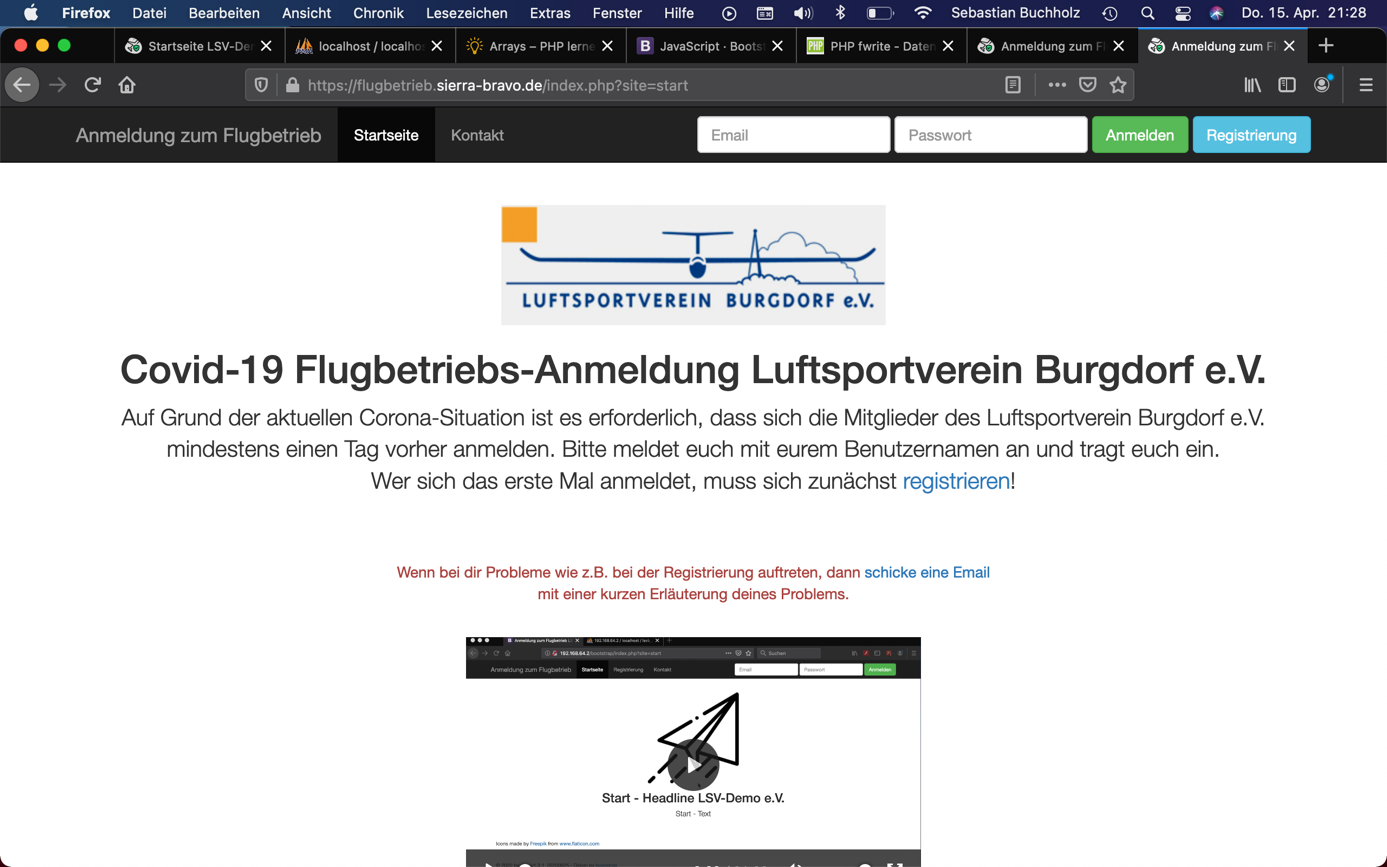 Das Anmeldeportal ist unter https://flugbetrieb.sierra-bravo.de erreichbar